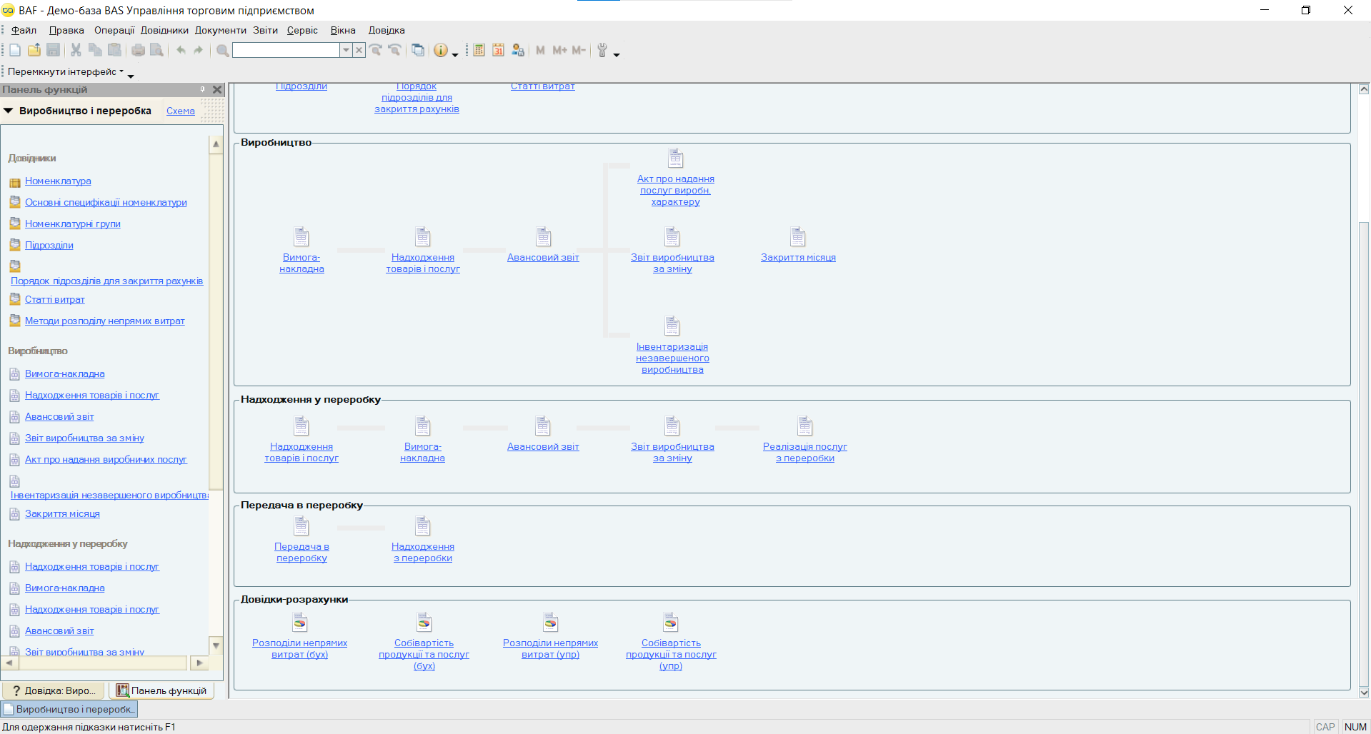 - Облік і аналіз виробництва та витрат (скрін 2):