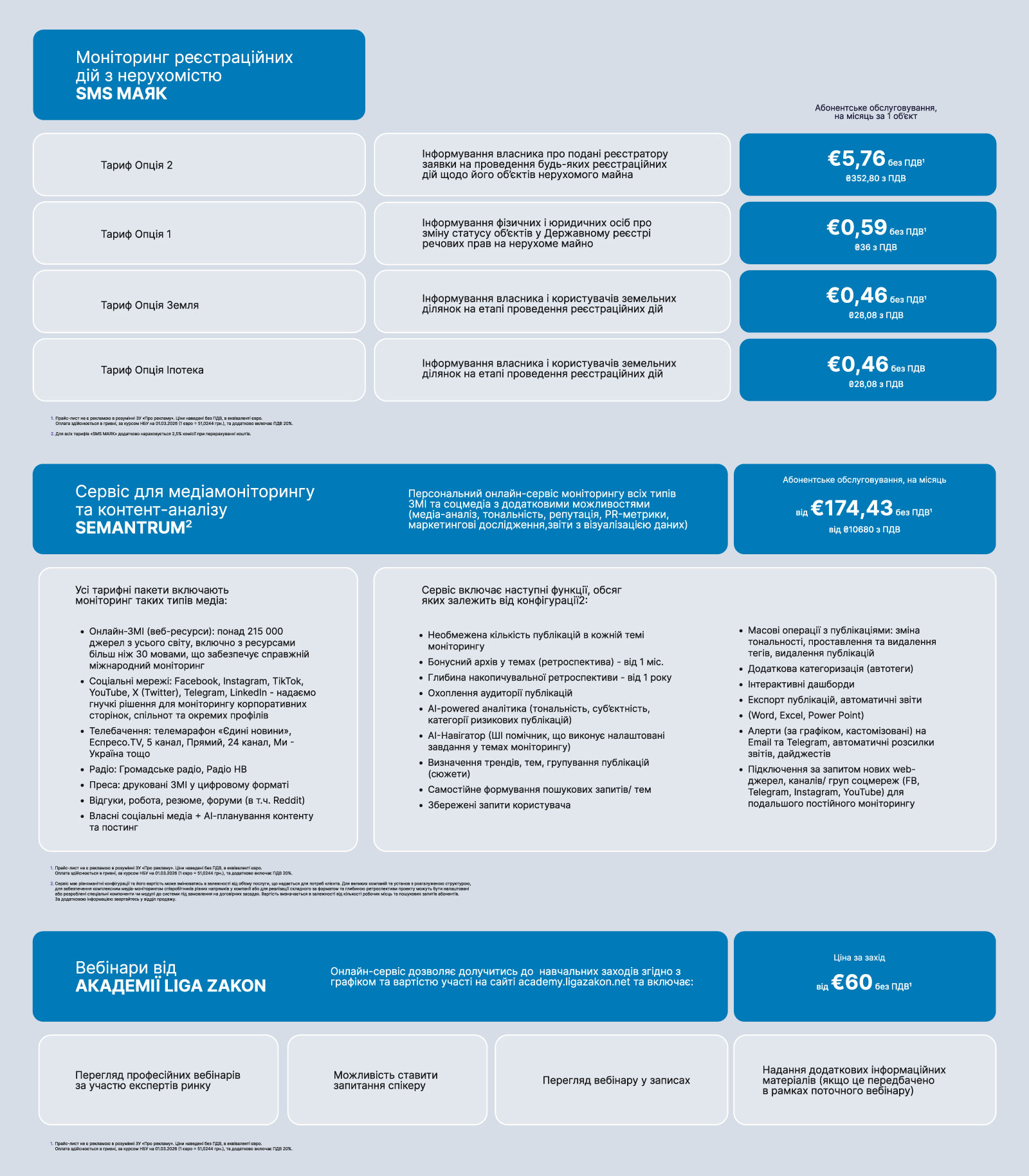 Прайс-лист на програми ЛІГА:ЗАКОН